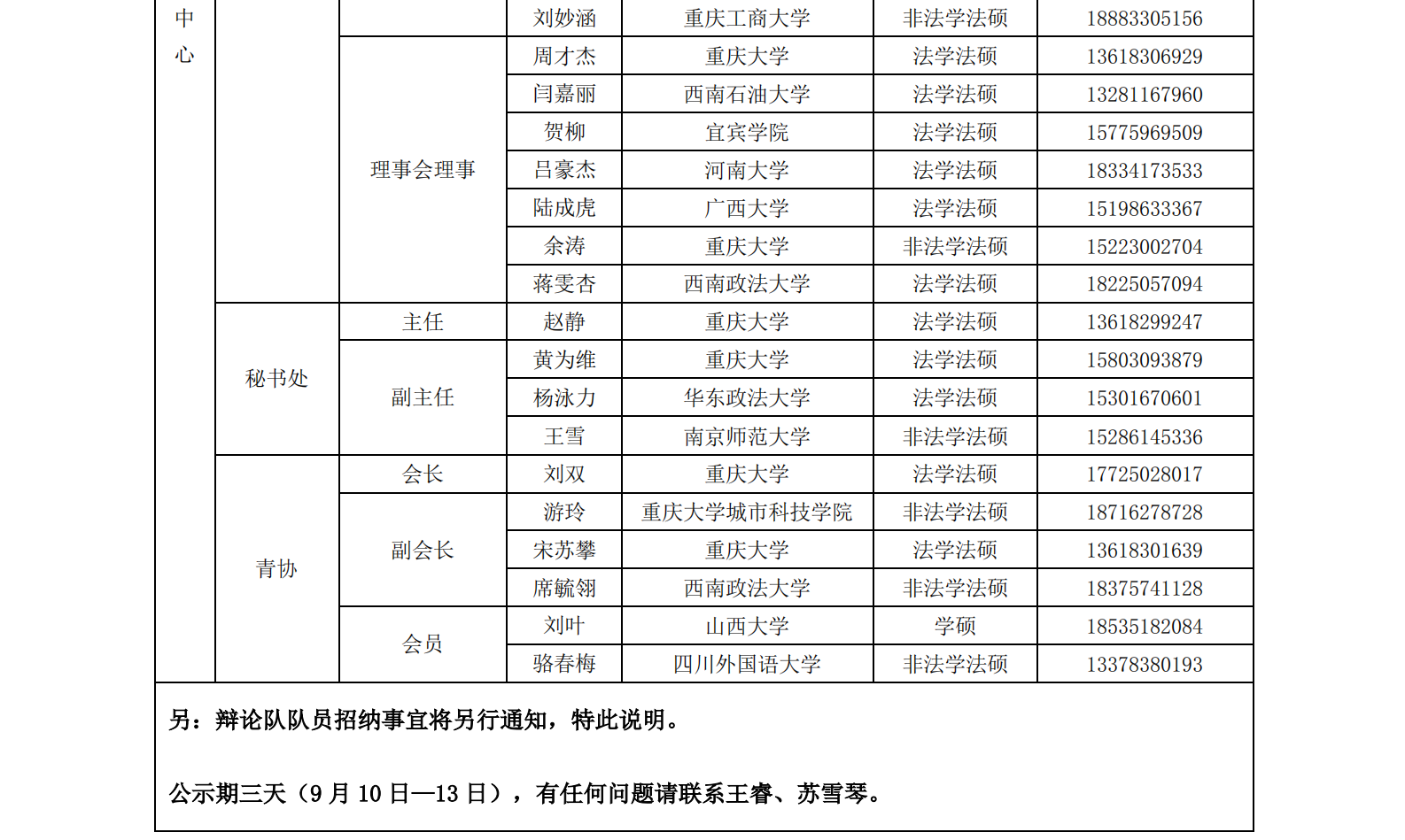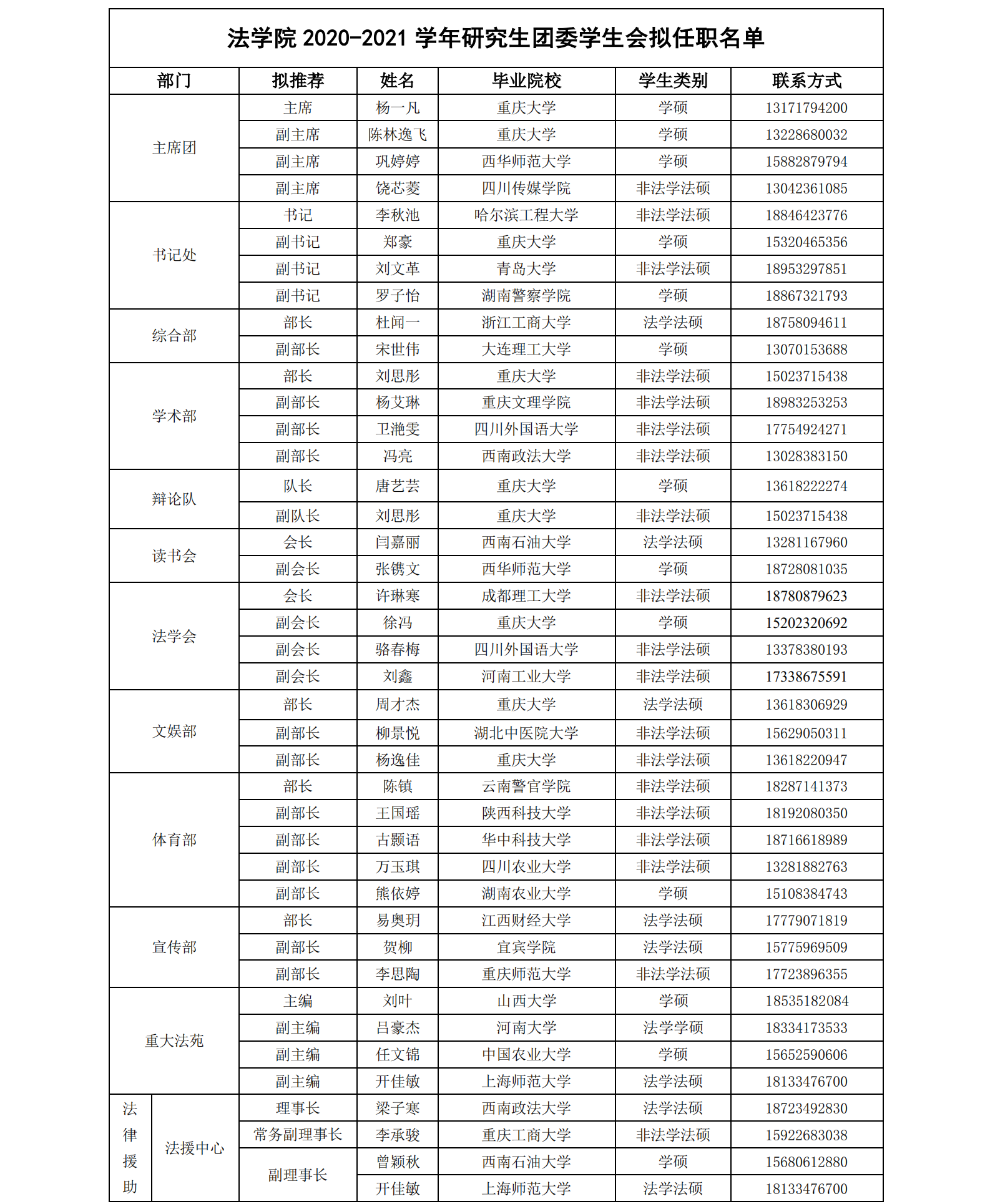 公司研究生团学纳新工作已基本结束,现公示《金沙js55882020-2021学年研究生团委员工会拟任职名单》,公示期三天(9月10日—13日)。