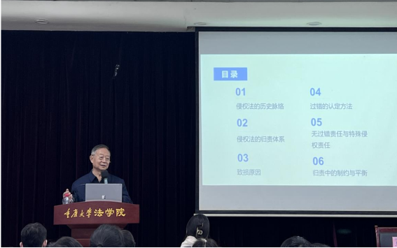 王卫国从侵权法“人类历史上最古老的社会治理规范体系”这一角色定位出发,深入分析了侵权法的归责体系、致损原因、过错的认定方法、无过错责任与特殊侵权责任、归责中的制约与平衡等几个方面的内容。讲座过程中,王卫国对大量侵权法典型案例进行了梳理和阐发,赢得了在场师生们的阵阵掌声。