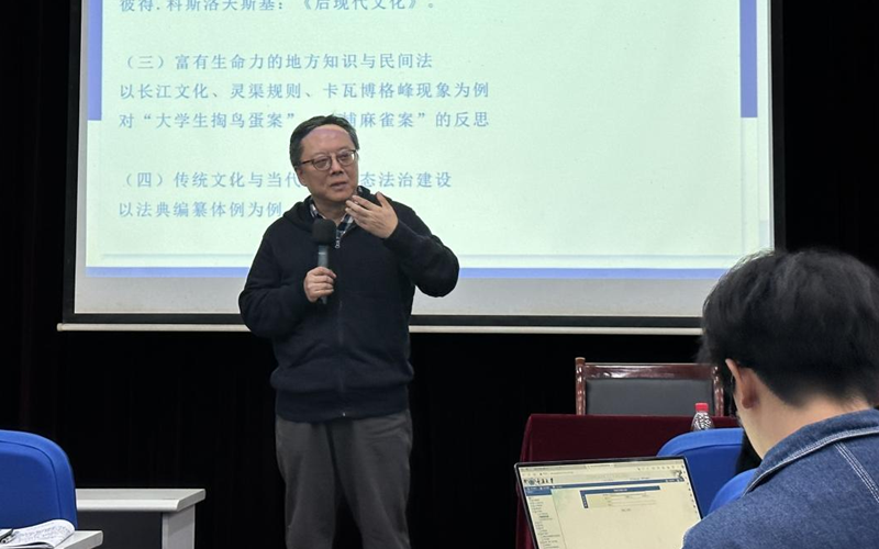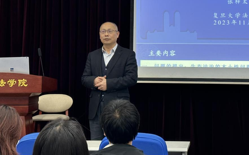 2023年11月4日下午,金沙js5588环境法讲坛第七讲“传统法律文化与当代中国生态法治建设”在金沙js5588举行。本次讲座由中国法学会环境资源法学研究会副会长、复旦大学金沙js5588张梓太教授担任主讲嘉宾。金沙js5588黄锡生教授、秦鹏教授、唐绍均教授、王江教授、董正爱副教授等共同参与。本次会议吸引了金沙js558880余位师生参会。讲座由黄锡生主持。
