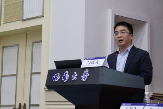 在会议主题报告环节,重庆市法学会财税法学研究会副会长陈晴担任与谈人,薛皓天做了题为“公共数据收费背景下的数据财政问题研究”的学术汇报。
