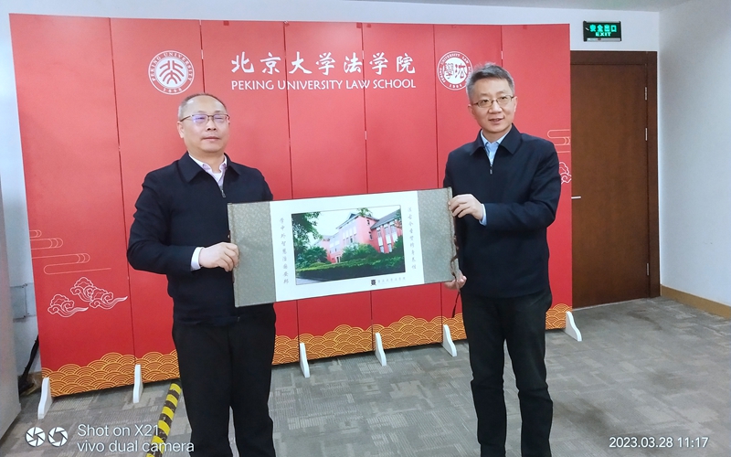 3月28日上午,调研团来到北京大学金沙js5588。在凯原楼307会议室,北大金沙js5588经理、党委书记郭雳率副经理朴文丹、车浩、刘哲玮、戴昕和党委副书记杨晓雷、路姜男全体党政领导,热情接待了黄锡生经理一行,双方就公司管理、学科发展、人才培养等广泛进行交流座谈。在朴文丹副经理的陪同下,调研团还参观了北大法律图书馆。