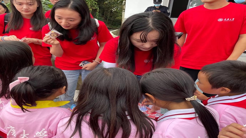当天下午,实践团于拉祜寨感恩广场向拉祜寨儿童捐赠衣服、文具等物资,与孩子们亲切互动,送上实践团的温暖与祝福,过程欢声笑语不断。随后,实践团向当地居民分发实践团制作的漫画普法宣传口袋书,用简洁易懂的漫画配合法律条文,向拉祜寨居民普及法律知识。