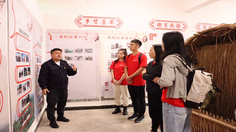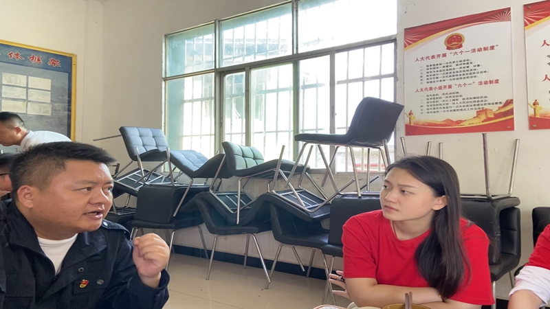 参观结束后,实践团与拉祜寨工作人员进行交谈,听他们讲述自己为何来到拉祜寨以及在拉祜寨工作以来的难忘经历。实践团成员了解到拉祜族是“直过民族”,经济基础薄弱,社会发育程度低,正是工作人员们挨家挨户上门做工作,才让原本贫困落后的拉祜寨跟上了国家繁荣发展的步伐。通过交流,实践团成员真真切切感受到了脱贫攻坚事业的艰苦,纷纷表达了对工作人员们的敬意。