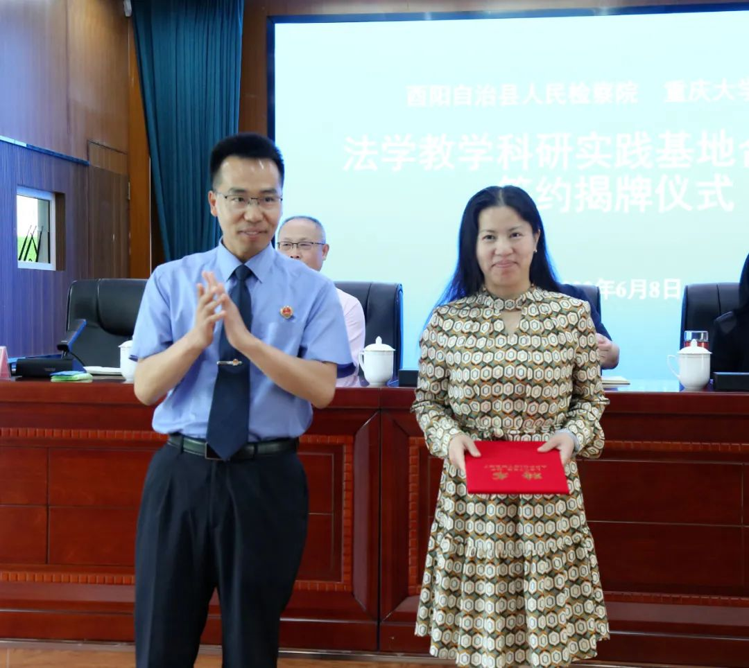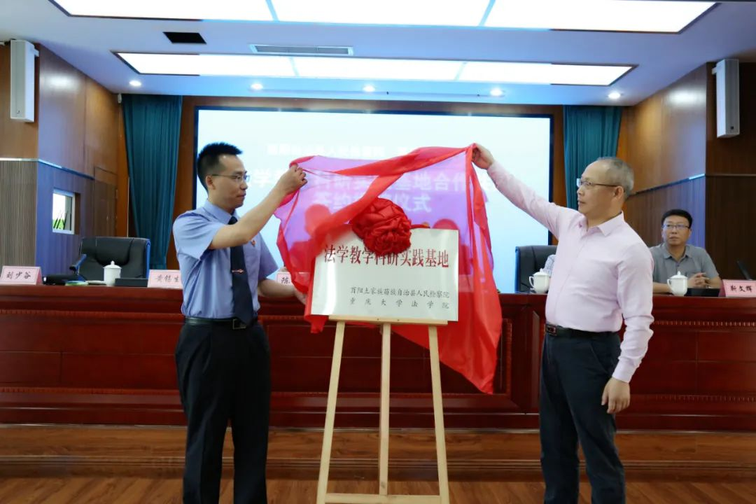 随后,酉阳县检察公司党组书记、检察长刘少谷宣读了法学教学科研实践基地合作共建协议内容,并与金沙js5588黄锡生经理共同签约、为法学教学科研实践基地揭牌。双方表示将以“平等合作、借力互补、共赢提升”为原则,以法学教学科研实践基地为平台,进一步加强检校合作,充分发挥高校法学理论优势和检察机关法律监督实践优势,深化合作领域,创新合作模式,培养更多高素质法治人才,全面推进依法治国、建设社会主义法治国家做出积极贡献,以实际行动迎接党的二十大胜利召开。
