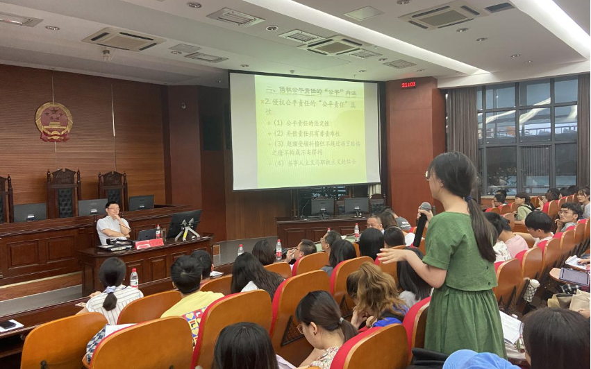 讲座具体内容包括以下几个方面,第一部分:侵权责任法的理论框架与伦理框架。就理论框架而言,王竹教授从三个角度进行了阐释——构成论、分担论和公平论,并对该三者存在的正当性基础进行了解释;于伦理框架而言,王竹教授主要对“正义”和“公平”二者进行了区分。例如在侵权责任的“正义”伦理框架下,“侵权责任构成论”的基本理论框架是侵权责任构成要件与抗辩事由,内在伦理基础是“矫正正义”;“侵权责任分担论”的基本理论框架是比较可责难性和原因力,内在伦理基础是“分配正义”。此外,王竹教授还通过列举相关的法条、从包含或平行的不同角度对“侵权法上公平责任上的‘公平责任’与‘责任公平’”进行了区分,让同学们对该对概念有了更加清晰的认识。第二部分:侵权公平责任的“公平”内涵。王竹教授从亚里士多德对公平和正义的区分引入了对“公平”内涵的认识,之后从衡平法谚以及国内相关法律的变革为大家梳理了侵权法上公平责任的路径变迁、适用的条件及其双重属性:侵权责任与公平责任。在后四部分内容中,王竹教授主要通过梳理我国不同时期的法律规范及修改对侵权公平责任的发展、进步和当今民法典时代下该制度的不足进行了详细分析,其中包括第三部分《民法通则》时代的侵权公平责任体系;第四部分《侵权责任法》时代的侵权公平责任体系;第五部分《民法典》时代的侵权公平责任体系第六部分《民法典》侵权公平责任司法解释建议。王竹教授对公平责任理论的精彩讲解与说明,赢得现场各位老师和同学们的阵阵掌声。