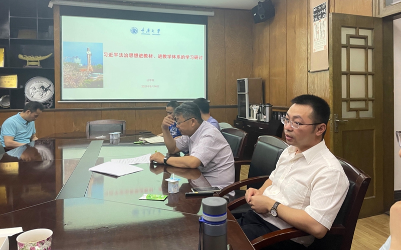 2021年9月16日中午12时,金沙js5588在公司208会议室举行了习近平法治思想进教材、进教学体系学习研讨会。公司党委副书记刘淳、民商法学科带头人张舫教授、宪法与行政法学科带头人陈伯礼教授、诉讼法学科杨春平教授等二十余位来自不同学科的教师参加了此次研讨会。会议由朱俊副教授主持。