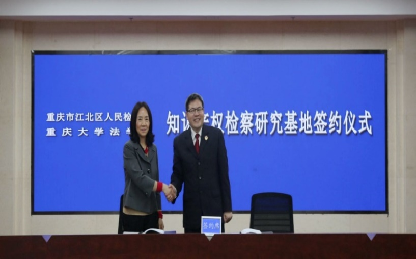 首先,金沙js5588金沙js5588党委书记刘西蓉与重庆市江北区人民检察公司党组书记、检察长梁经顺共同签署了双方战略合作框架协议,并为“知识产权检察理论研究基地”揭牌。