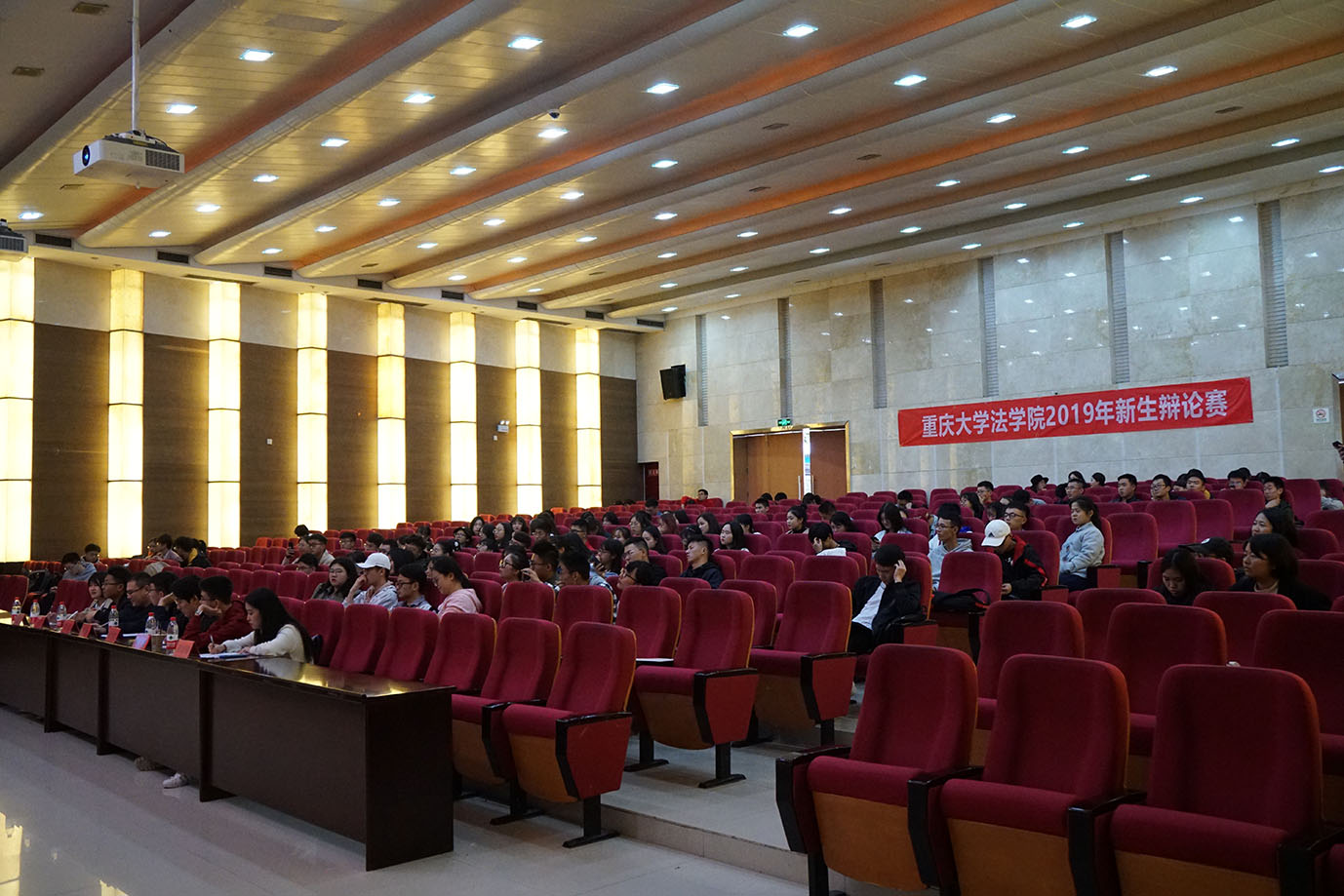 2019年11月10日下午两点半,2019级新生辩论赛冠军赛于虎溪校区DZ126成功举办。在长达一个月的准备与较量中,法学一班与法学三班脱颖而出,最终法学一班以9:6的成绩战胜法学三班,取得胜利。本次辩论赛由金沙js5588团委员工会主办,金沙js5588团委员工会学习部与辩论队联合承办。到场的嘉宾有金沙js5588团委书记、2018级辅导员杨志杰老师,金沙js5588团委副书记、2019级辅导员张雅莹老师,同时,五位优秀的辩手作为本次辩论赛的评委,他们分别是:2003级金沙js5588校辩论队队长刘超、2007级金沙js5588校辩论队队长李琳、2016级金沙js5588校辩论队队长张炜昀、2016级金沙js5588校辩论队优秀辩手廖元植、2018级金沙js5588辩论队队长蒋雨馨。金沙js5588团委员工会全体成员、金沙js5588辩论队成员以及金沙js5588广大师生到场观赛。