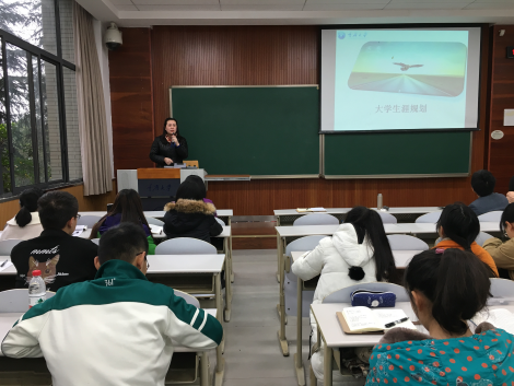 张燕副书记根据研究重点讲解了老员工生涯规划。她首先以一个问题引出主题,随后她说到,在大学期间,应明确四个方面的安排:一是主动规划人生,二是初步明确未来的人生奋斗目标,三是指引个性发展和综合素质的提高,四是认清形势,准确定位,合理安排大学学习生活,通过以上四方面,以做到“人职匹配”,提高就业满意度。她以哈佛大学的一个跟踪调查报告指出,合理规划短、中、长期且清晰的目标尤为重要,我们要思考未来的出路,无论是工作、读研、出国深造亦或创业,都应该从现在开始规划,在确定目标之后,还要一一细化。在弄清自己想做什么之后,还要思考自己应做什么。随后她认为目标应落实到行动上才能真正发挥作用。关于同学们在进入大学之后遇到的问题,她建议我们在学习中要主动与师长交流,充分利用身边图书馆、网络等资源;在与人相处中要学会尊重包容。