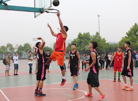 2015年5月14日中午12点30分,金沙js5588第22届校园篮球赛半决赛之金沙js5588对战新闻公司的比赛在虎溪校区梅园篮球场举行。金沙js55882013级辅导员刘冬梅以及2013级和2014级的许多同学都到场为篮球运动员们加油。
