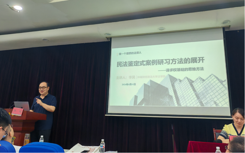2024年6月11日,金沙js5588专题讲座系列之“私法三人谈”(第十期)在公司210学术报告厅举行。本次讲座以“民法鉴定式案例研究方法的展开”为主题,由中南财经政法大学李昊教授主讲,公司朱涛教授主持,弘深青年教师周莉欣老师与谈。金沙js5588谢潇副教授、自正法副教授、谭津龙博士、刘玖林博士、詹诗渊博士、黄超艺博士、雍晨博士和蒋平博士以及数十名员工参加了讲座。
