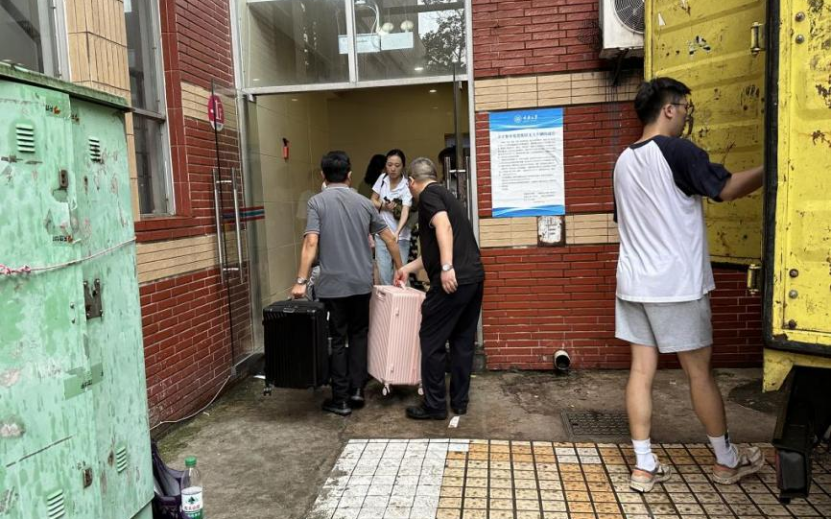尽管天气不佳,天空下雨,但师生们齐心协力,共同克服了种种困难。大家有的帮助其他同学搬运行李,有的负责引导交通和维持秩序。公司还准备了矿泉水、藿香正气液、雨衣等物品。经过几个小时的紧张忙碌,早上8时许,搬迁工作顺利完成。