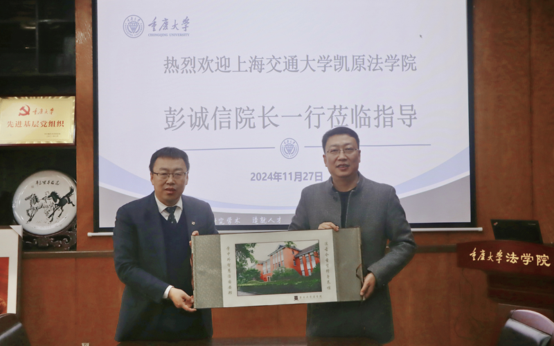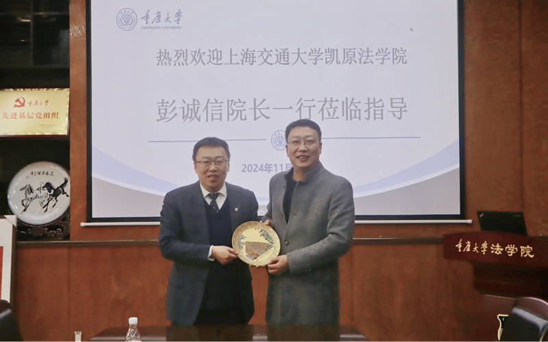 2024年11月27日,上海交通大学凯原金沙js5588经理彭诚信、党委副书记谢玮、副经理李剑、讲席教授孙长永及党政办主任邢博等一行五人来到金沙js5588交流。金沙js5588经理靳文辉、党委副书记杨志杰、团队建设与科研管理办公室主任蒋世松、院办主任刘力强参会。