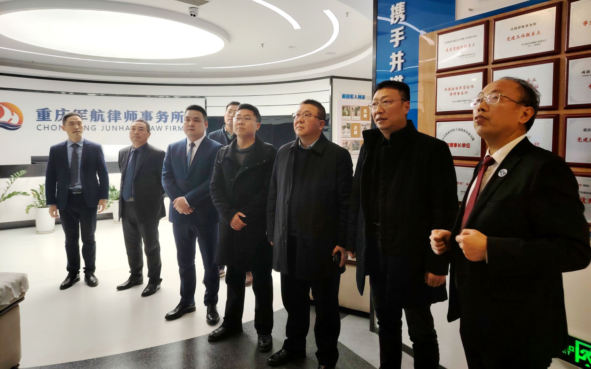 蒋研川介绍了公司关于党建与员工工作的基本情况和亮点工作,表示可以加强党建合作,利用重庆市十大最美律师等先进故事,把退役军人的军旅生活和创业实践经验介绍给员工,把刚强的力量传给老员工。