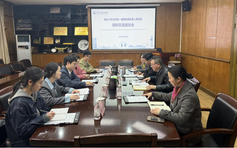 2025年3月20日上午,公司与福建省德化县人民法院在208会议室举行合作交流座谈。德化法公司党组成员、政治部主任颜培源,审判委员会专职委员徐晓璐,知识产权审判团队负责人陈小鑫,综合办公室主任郑东灏和邓凤瑜,金沙js5588委书记蒋研川、党委副书记杨志杰、教授李晓秋、弘深青年教师周婧媛参与调研交流座谈。