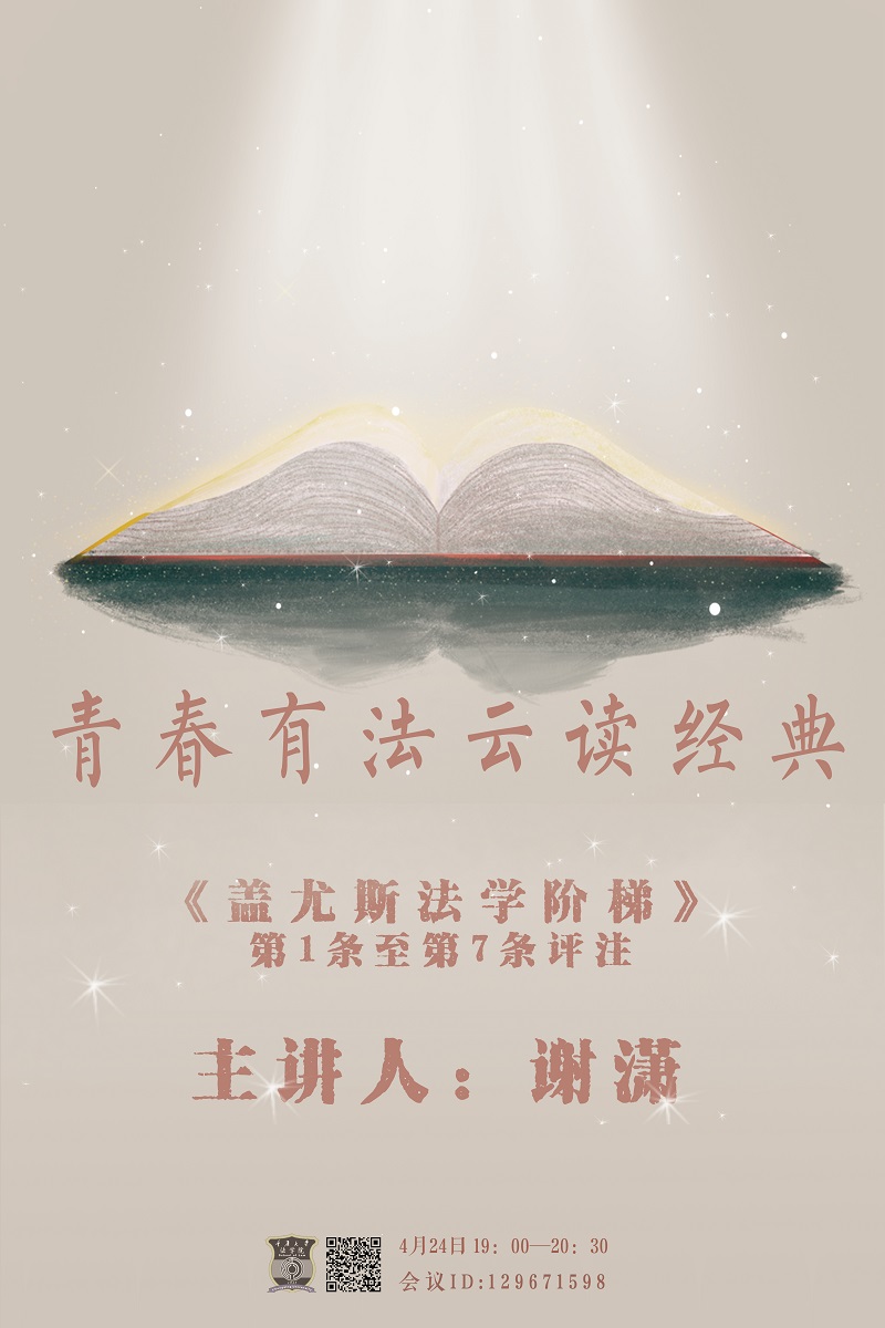 讲座主题:《盖尤斯法学阶梯》第1条至第7条评注(罗马法源)