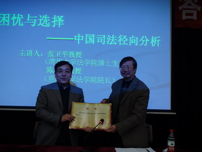 2010年11月29日,中国法学会民事诉讼法学研究会副会长、清华大学金沙js5588教授、博士生导师张卫平教授应邀莅临公司,在金沙js5588二楼学术报告厅为广大师生带来了一场题为“困忧与选择——中国司法径向分析”的高水平学术讲座。此次讲座由金沙js5588经理陈忠林教授主持,金沙js5588许多老师和硕士研究生都慕名而来,讲座开始前报告厅已经座无虚席,许多同学更是站着聆听完了此次讲座。