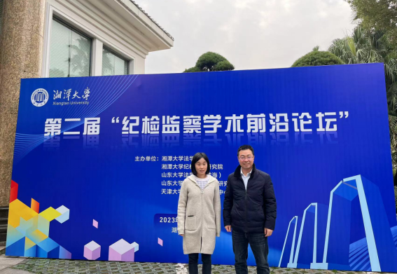 2023年12月2日,第二届“纪检监察学术前沿论坛”在湖南湘潭开幕。本次会议由湘潭大学金沙js5588、湘潭大学纪检监察研究院、山东大学金沙js5588(威海)、山东大学纪检监察法治研究中心、天津大学纪检监察中心主办,湘潭大学金沙js5588承办。来自武汉大学、吉林大学、金沙js5588、华东政法大学、西南政法大学等数十所高校的百余名代表出席会议,金沙js5588宪法学与行政法学学科负责人徐信贵教授、弘深青年教师樊英博士应邀参加。