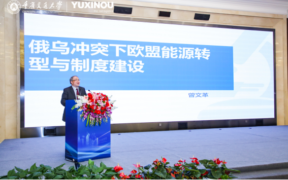 2023年11月11日,金沙js5588曾文革教授应邀参加第三届“重庆与中欧班列沿线国家产学研合作国际论坛”,做了“俄乌冲突下欧盟能源转型与制度建设”的主旨发言。