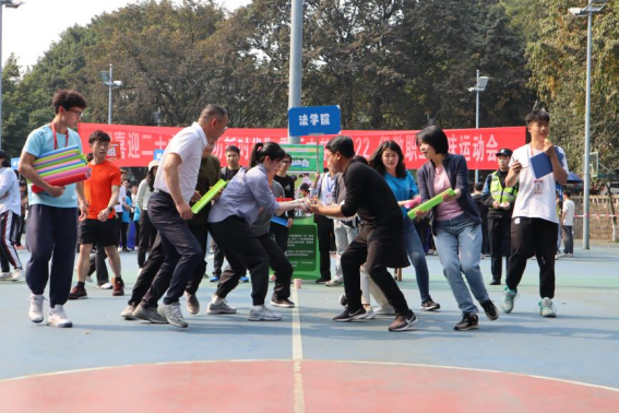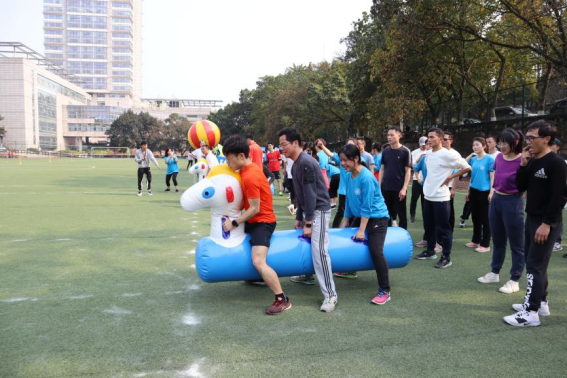 金沙js5588分工会组织20位公司女教职工表演了第九套广播体操,展示了公司女教职工昂扬向上的精神风貌。本次趣味运动会以工会小组为单位,全校有43支参赛队伍,金沙js5588分工会组织了28位教师参与趣味运动会,比赛共包括播种希望、珠行万里、鸿运当头、勇往直前、马到功成等5个比赛项目。