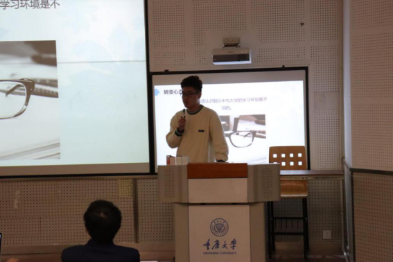 推免至武汉大学的曹梓逸同学,他分享的主要话题是如何充实课余生活,在他看来,本科生的各类课余生活可以占到百分之三十的部分。从高中到大学,新生们首先要做的,就是心态上的转变。之后,大家可以通过学术专业技能、培养兴趣爱好、尝试团队工作和丰富实践经验四个方面循环学习,找到属于自己的节奏。他单独强调了养成各种好习惯的重要性,最后还给同学们介绍了一些校内的优质活动。