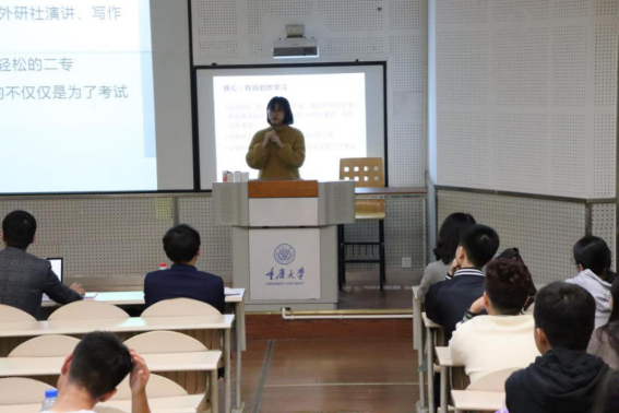 推免至天津大学的苏妍同学,她主要是分享了如何协调员工工作与专业学习的问题。她认为,员工工作能够作为自我调节的工具,提升自己的抗压能力和时间规划能力,实现自我价值的满足感。她结合自身的任职情况、成绩和获奖情况,以前车之鉴,提醒同学们要注意时间管理和心态的调整。最后她总结道,协调员工工作与专业学习重点是要做到统筹规划,积极调正心态并懂得取舍。要相信只要用心,自己就一直在成长当中。