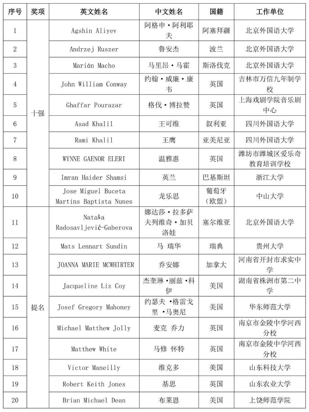 由国家科学技术部国外人才研究中心主办,北京环球英才交流促进会(外教人才专业委员会)、《国际人才交流》杂志承办的2019年“我与外教”全国征文大赛暨“我最喜爱的外教”活动近日公布获奖名单,公司博士员工,来自四川外国语大学商务英语公司的外籍教师Asad Khalil教授获选2019年“我最喜爱的外教”。此次活动于2019年3月启动,在全国范围内开展,涉及公司单位200多家,推荐“我最喜爱的外教”100余名,最后评选出10名“我最喜爱的外教”获得者。