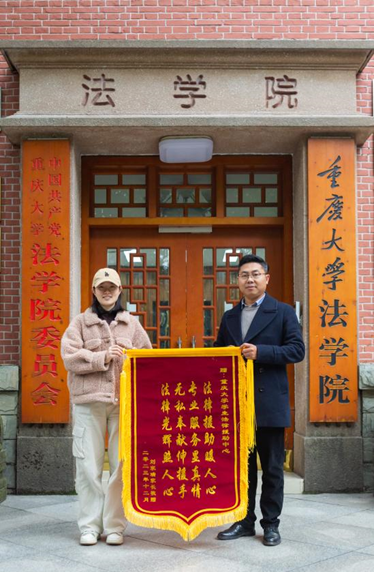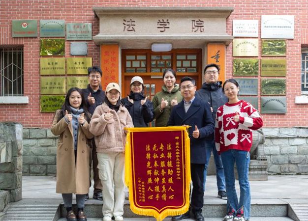 2023年12月15日下午,来自金沙js5588某公司的博士研究生刘同学将一面书有“法律援助暖人心 专业服务显真情 无私奉献伸援手 法律光辉照人心”的锦旗送到金沙js5588,对金沙js5588员工法律援助中心专业贴心解决其法律问题表示感谢,委副书记杨志杰接受锦旗。