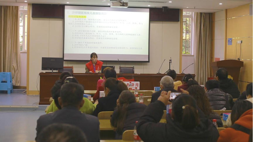 宣讲主要分为助残政策普法宣讲和法律咨询服务两部分。助残政策宣讲环节,志愿者首先为在场的残障人士介绍了国家关于残障人士的现行保障政策,如困难残疾人生活补贴、重度残疾人护理补贴以及残疾人创业就业、出行、教育等方面的优惠政策。随后,志愿者结合沙坪坝区实际,介绍了包括残疾儿童康复救助和残疾人基本辅助器具适配补贴等优惠政策。最后,志愿者针对听障、视障人士的康复救助补贴等生活中常见的实际问题及如何解决进行了详细讲解。