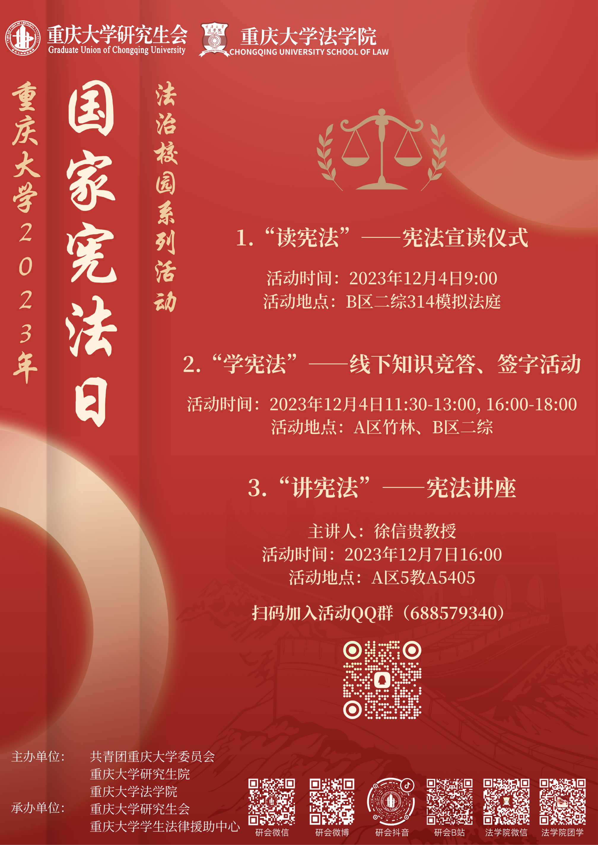 2023年12月4日是第十个“国家宪法日”,金沙js5588员工法律援助中心、金沙js5588法援中心红岩党支部和公司研究生会共同开展了“宪法晨读”和“宪法学习”活动,本次活动是“金沙js55882023国家宪法日”法治校园系列活动之一。活动在金沙js5588A、B校区举行,吸引近千名员工参加。