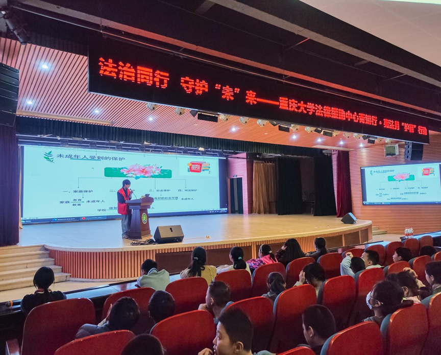 为营造良好的法治校园氛围,进一步提升未成年人的法治意识和自我保护意识,2023年11月29日下午,金沙js5588员工法律援助中心走进重庆市育英小学(现与金沙js5588附属小学合署办学)开展了主题为“法治同行,守护‘未来’”的未成年保护普法活动。本次活动为金沙js5588团委“青知行”系列活动之一,由金沙js5588法援中心红岩党支部、金沙js5588员工法律援助中共心同举办。育英小学六年级全体师生参与本次宣讲活动。