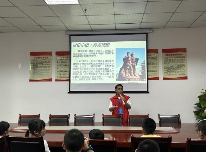 为提高党史学习的趣味性和故事性,实践团面向社区员工以“中国最古老的民族——彝族的过去、现在与未来”为主题开展民族党史宣讲课,以加深青少年对我国民族政策以及少数民族文化的了解。实践活动围绕“彝海结盟里的彝族及其传统文化”展开,主要介绍了我国的民族政策、彝族地区的党史以及凉山彝族的风俗习惯。随后,实践团与社区员工就这一话题进行了深入的交流与互动。