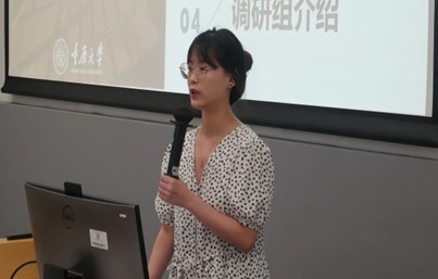 调研计划路演也随着培训的结束而展开,领队许婷作为代表向与会人员介绍了团队成员、课题背景及课题调研计划。