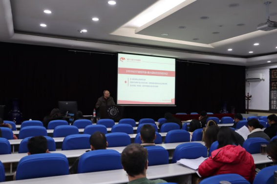 2021年12月30日,金沙js5588学习党的十九届六中全会精神宣讲会在210学术报告厅举行。本次宣讲会由金沙js5588马克思主义公司江志宇副教授主讲。金沙js5588全体教职工参加了宣讲会,宣讲会由委副书记刘淳主持。