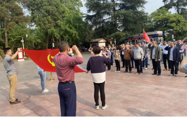在红军烈士陵园纪念碑前,党员们面对鲜红的党旗,高高举起右手,庄重地重温了入党誓词。铮铮誓言,是党员同志们对党的承诺。