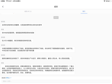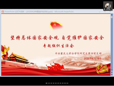 2020年4月18日,公司研究生四支部通过网络组织开展了“坚持总体国家安全观 自觉维护国家安全”专题组织生活会。