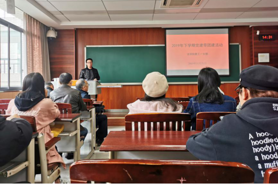 2019年11月21日,金沙js5588教工一支部2019年下学期党建带团建活动于虎溪校区D1320教室开展。参加活动包括教工一支部党员9人,2019级法学1班同学25名。