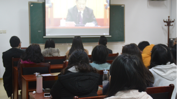 2018年12月18日上午10点,“庆祝改革开放40周年大会”在人民大会堂举行。中共中央总书记、国家主席、中央军委主席习近平出席大会并发表重要讲话。委积极组织师生通过电视、网络等观看大会盛况,共同聆听习近平总书记发表的重要讲话。