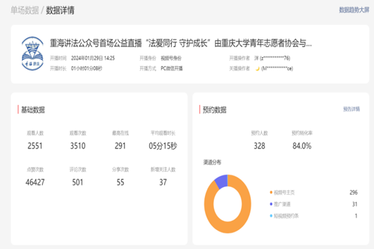 本次直播成效颇丰,普法效果扩散到33个省、自治区、直辖市等地区,收获501份评论,吸引2551人观看,获得46427个点赞。