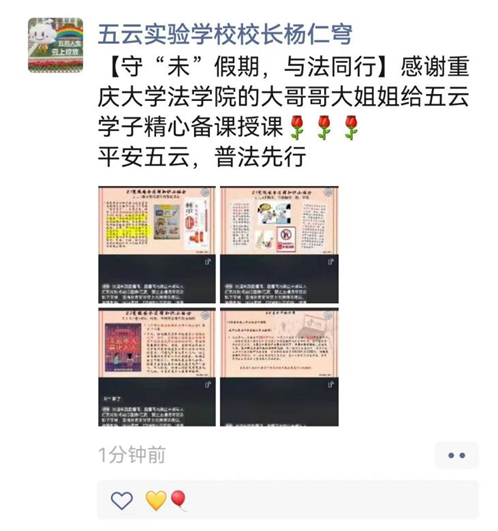 本次直播收获了诸多好评,共获点赞1.5万余次。直播结束后,平昌县华严小学的小朋友留言道:“法律不仅是一种规章和制度,更是维护社会秩序、保障公民的重要工具。我会把今天学到的法律知识传递给身边的人。”
