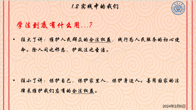 此次活动旨在引导青少年提升自身法治意识、学习法律、崇尚法律,自觉抵制违法行为,达到“润物细无声,法治入人心”的普法宣传效果。金沙js5588“‘援’梦新时代——百子返乡‘枫’华正茂”实践团以此次直播为契机进行“法”式迎新,为群众送上“法治年货”增添年味。在未来,实践团将继续创新实干,为营造浓厚的法治校园文化,增强青少年法治宣传教育工作做出更多贡献。