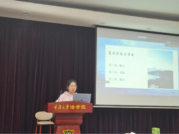 李晓梅从总体复习方法、考试公众号推荐、团队选择、冲刺计划及复习顺序这五个方面进行了分享。她提醒同学们,法考复习要有战略,结合科目难易程度和自己的实际情况,适当取舍,合理安排复习计划。