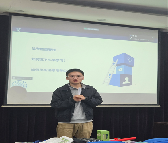 杜江首先结合自己的求职经历向同学们介绍了法考的重要性,同时也向大家分享了在备考时间有限的情况下如何实现高效学习。在谈到毕业季如何平衡求职考公、撰写毕业论文与法考的关系时,杜江总结了三条经验:一是早做准备,按照事情的轻重缓急合理分配时间,打有准备之仗;二是结合自身情况,尽早开展职业规划,积极参加实习实践,提升自身综合素质;三是注重日常积累,积极与导师、同学沟通交流,他山之石可以攻玉。