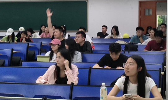 在党纪学习环节,王少杰带领大家学习了《中国共产党纪律处分条例》和《中华人民共和国国家监察法》,帮助同学们更深入地了解国家开展党风廉政建设和反腐败斗争的历程。他倡导同学们主动通过党风廉政学习,打牢思想基础,筑严思想防线,树立正确的得失观、名利观、荣辱观。为巩固学习成效,本次活动还设置了有奖问答环节,同学们踊跃举手抢答,积极参与互动,切实做到学纪、知纪、明纪、守纪。