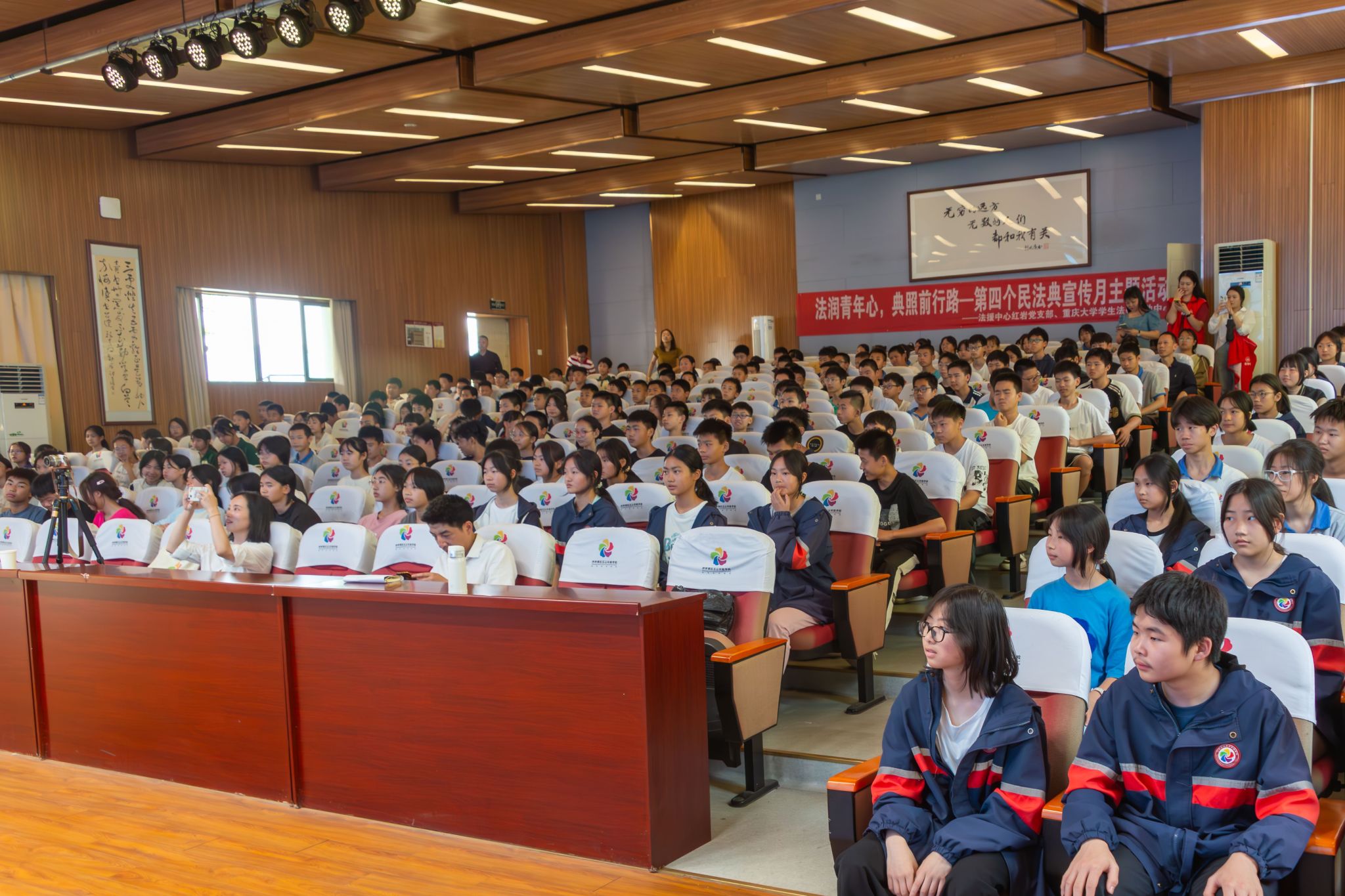 为大力弘扬法治精神,营造浓郁的校园法治氛围,2024年5月15日下午,金沙js5588法援中心红岩党支部、金沙js5588员工法律援助中心共同走进重庆市沙坪坝区五云实验公司,开展了一场“法润青年心,典照前行路——校园反霸凌宣讲”的专题普法活动。公司研究生辅导员柳青与来自金沙js5588的15名志愿者参加了活动,来自五云实验公司的600余名师生现场参加活动,活动由五云实验公司董事长杨仁穹主持。