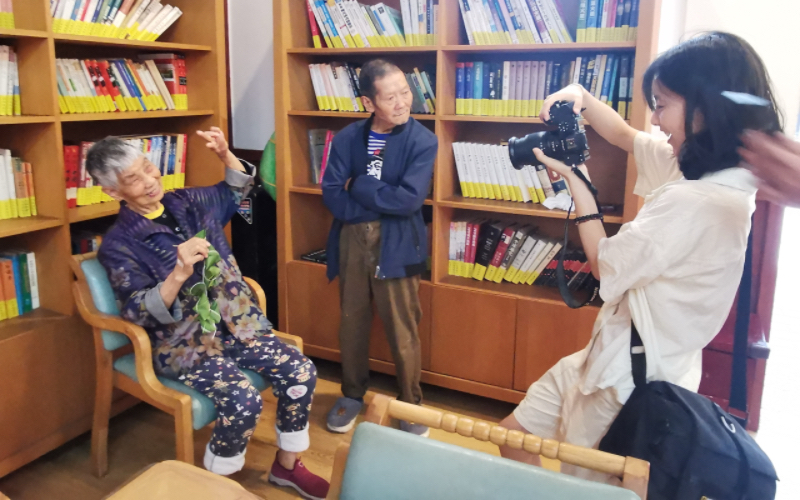 活动第三个环节是给老人们单独合照留念。老人们都非常高兴,热情的与各位党员同志合影。任小雨同学为老人们单独拍照,记录下老人们洋溢着幸福笑容的美好的时刻。
