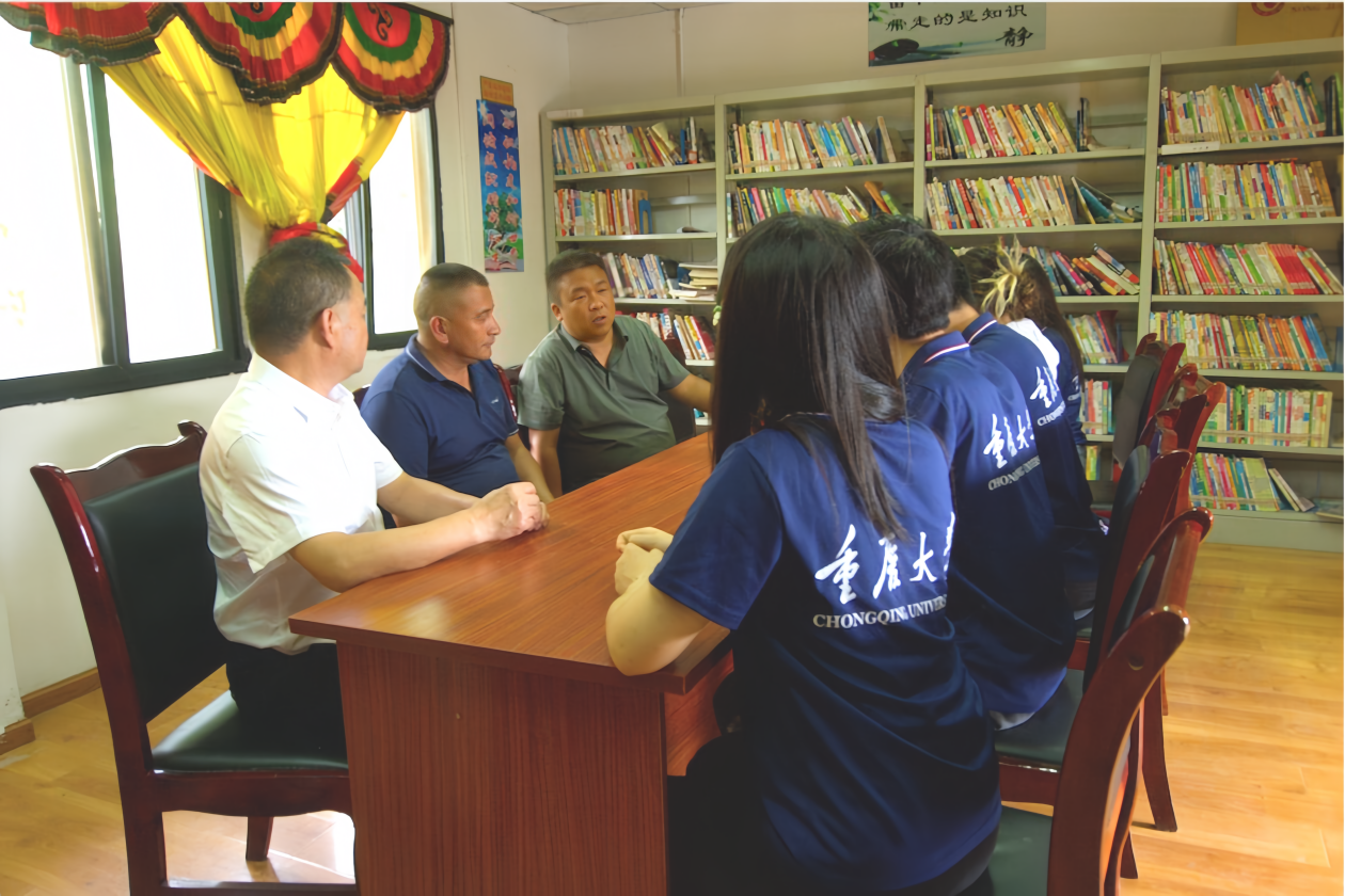 图为余彬书记及村委会干部与实践团成员座谈交流。通讯员 邱妍 刘可 摄