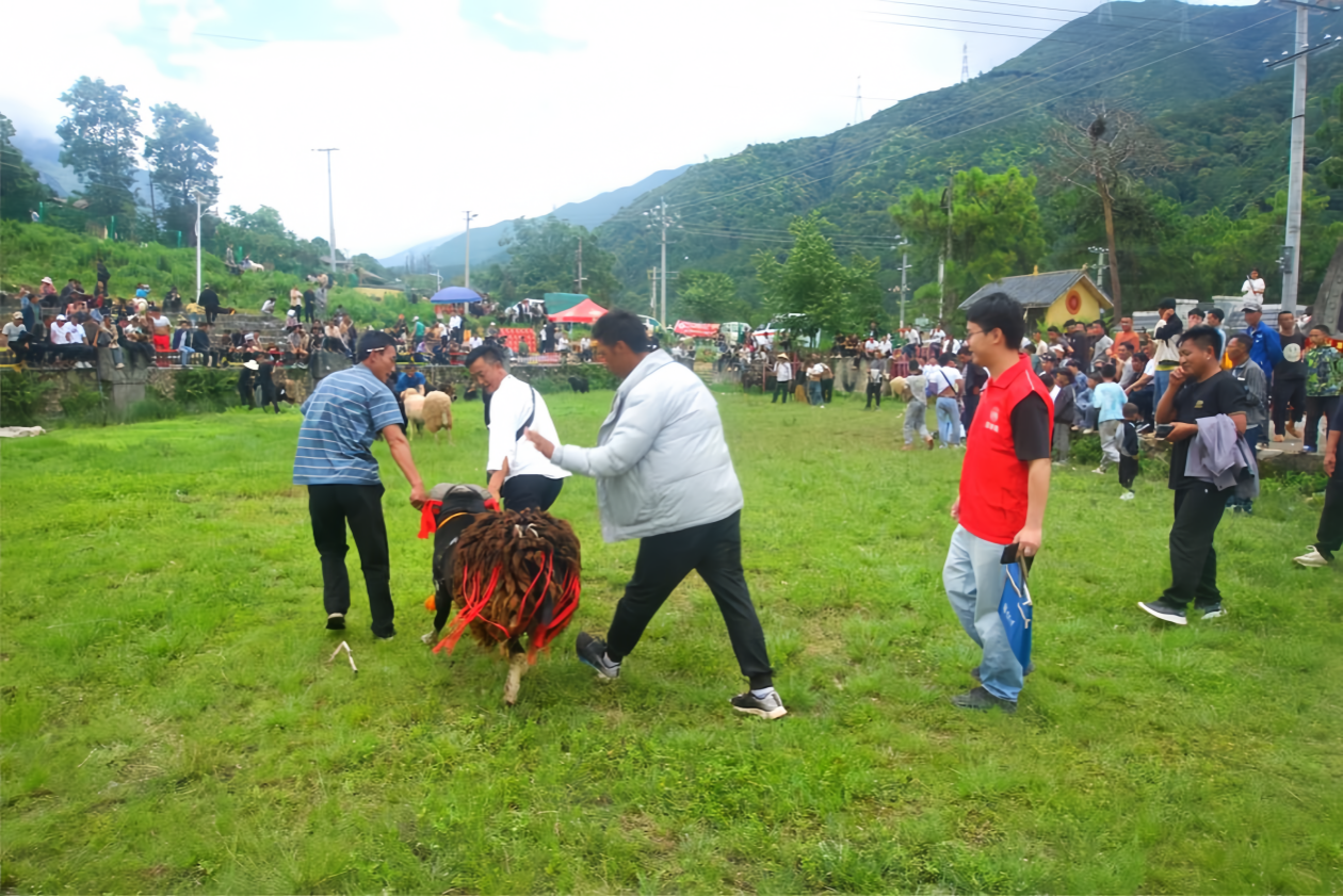 实践团与长板桥村村民委员会协同组织长板桥村“禁毒防艾”普法宣传活动,将彝族传统的“斗羊活动”与“禁毒防艾”普法宣传相结合,不仅丰富了村民的文化生活,还使得普法教育更加深入人心。这一创新举措不仅展示了彝族文化的独特魅力,还通过寓教于乐的方式,有效提升了村民对“禁毒防艾”的认识和法律意识,为乡村文化建设和乡村治理注入新的活力。
