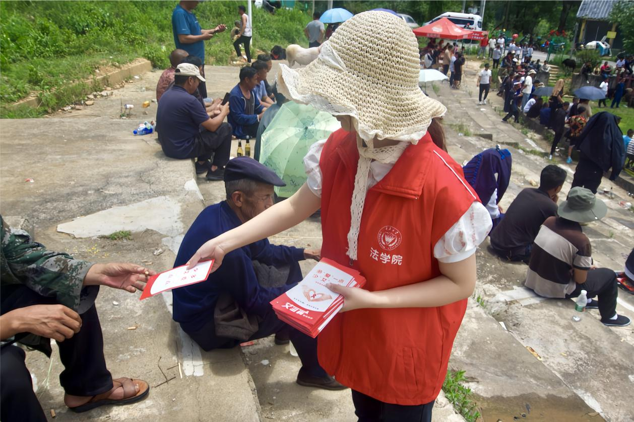 图为实践团成员为村民提供法律咨询。通讯员 邱妍 刘可 摄