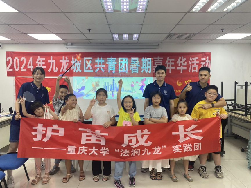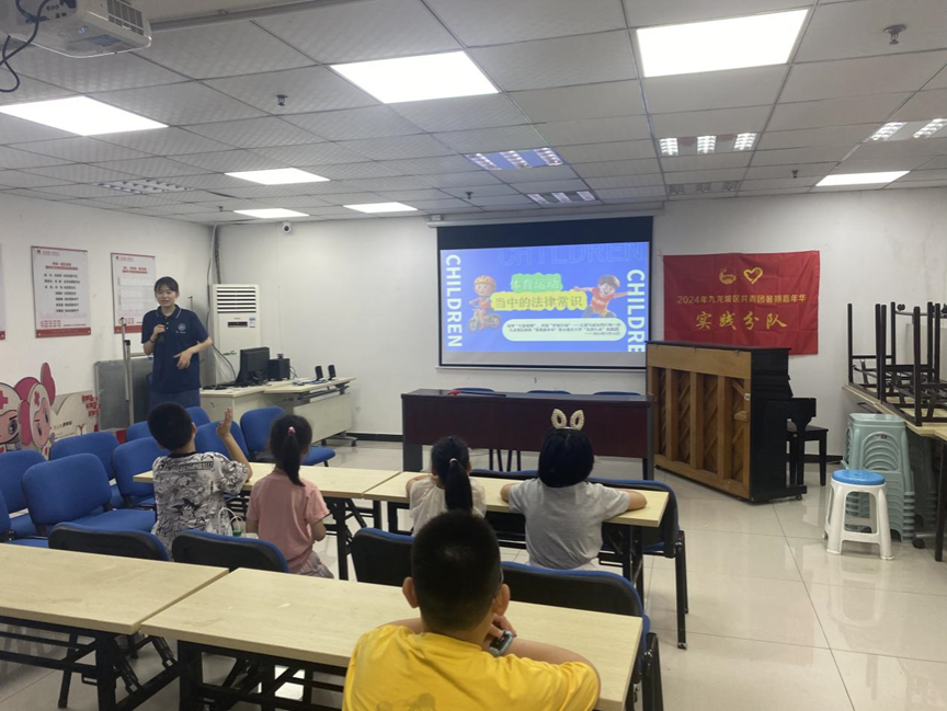 为帮助青少年在成长过程中牢固树立法治意识,增强青少年对于安全问题的警觉性和预防能力,金沙js5588团委书记张雅莹带领金沙js5588“援”梦新时代实践团“法润九龙”实践分队于2024年7月16日,与九龙坡团区委联合开展“共青团暑期嘉年华”活动,将法律知识融入到体育运动和防溺水教育等领域中,精心构建一系列生动有趣的法治教育小课堂。